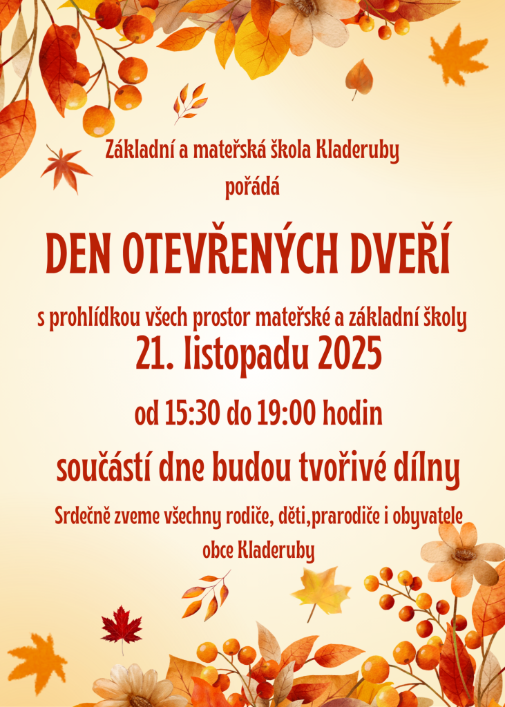 I letos Vás všechny zveme na Den otevřených dveří. Prohlédnout si můžete všechny prostory mateřské i základní školy. Můžete tvořit v dílnách, které pro vás již tradičně s láskou připravujeme.